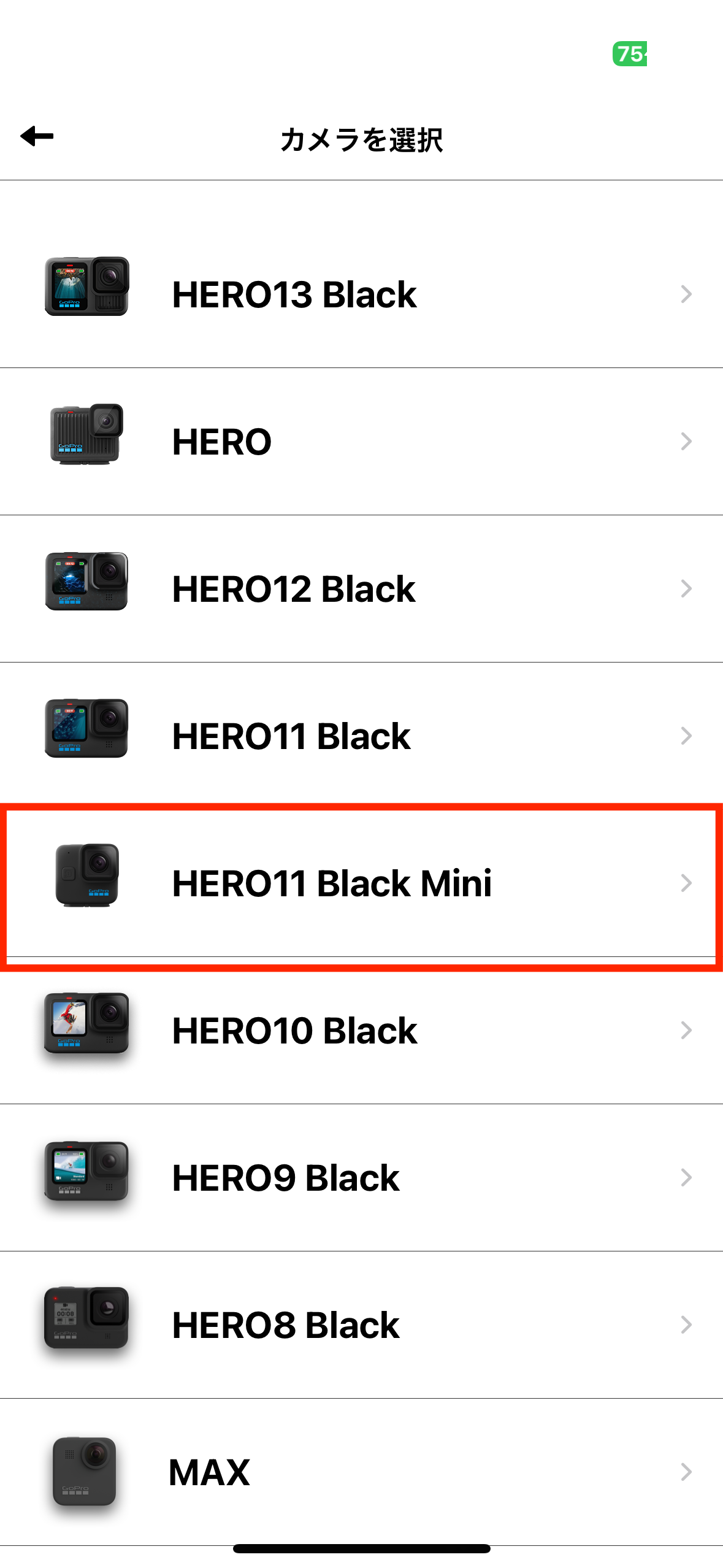 「HERO11 Black Mini」を選択します。