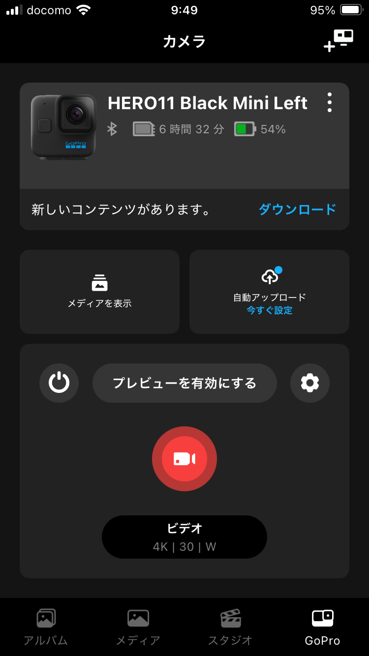 接続すると、GoPro Quikのホーム画面が表示されます。これでペアリングは完了です。