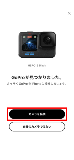 自分のカメラであることが確認できたら、再度「接続」を押します。