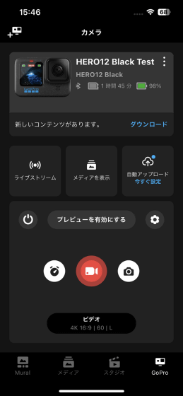接続すると、GoPro Quikのホーム画面が表示されます。これでペアリングは完了です。