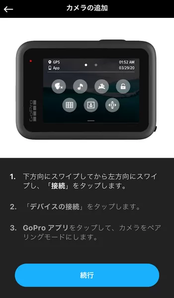 「GoPro Quik App」を選択すれば、カメラはペアリングモードになります。