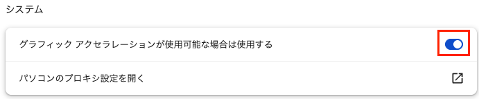 グラフィックアクセラレーションの設定をオンにする