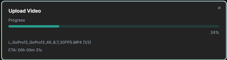 アップロードが途中で止まった場合は、同じファイルを最初から再度アップロードしてください。途中からの再開には対応していません。